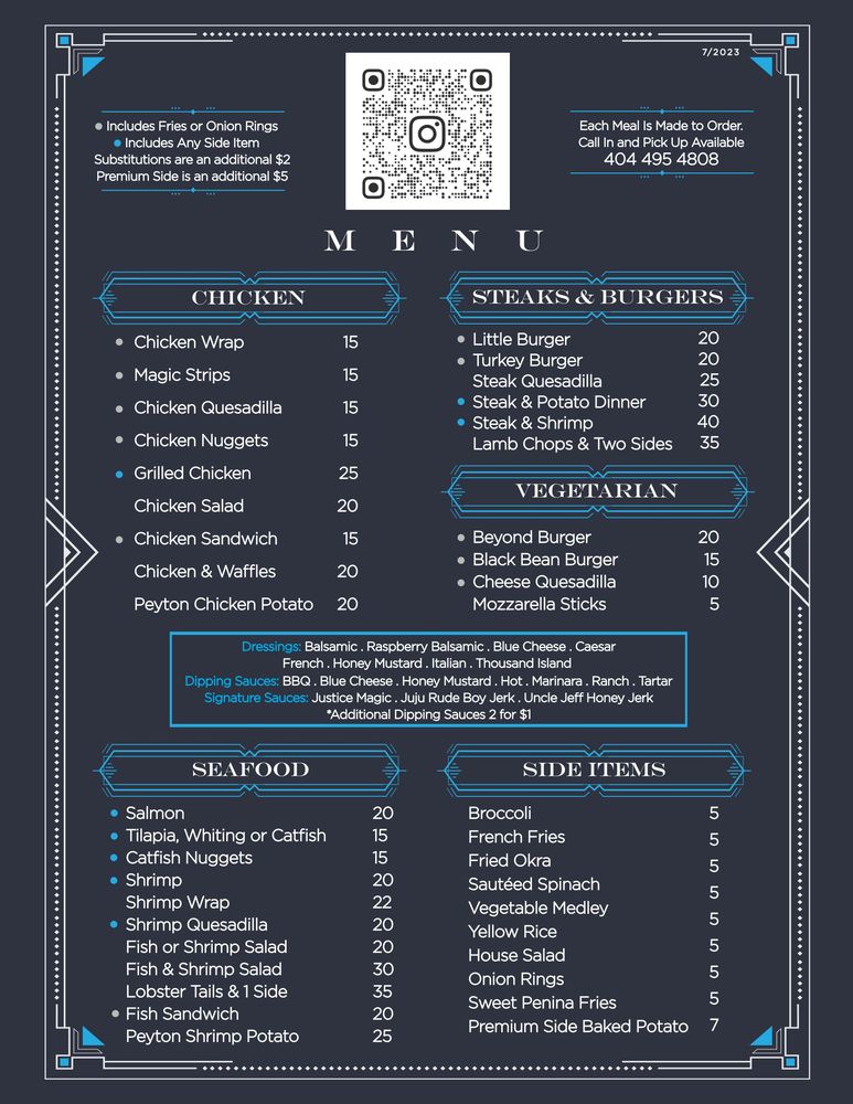 Any item tossed, cooked, sauced in Justice Magic sauce
